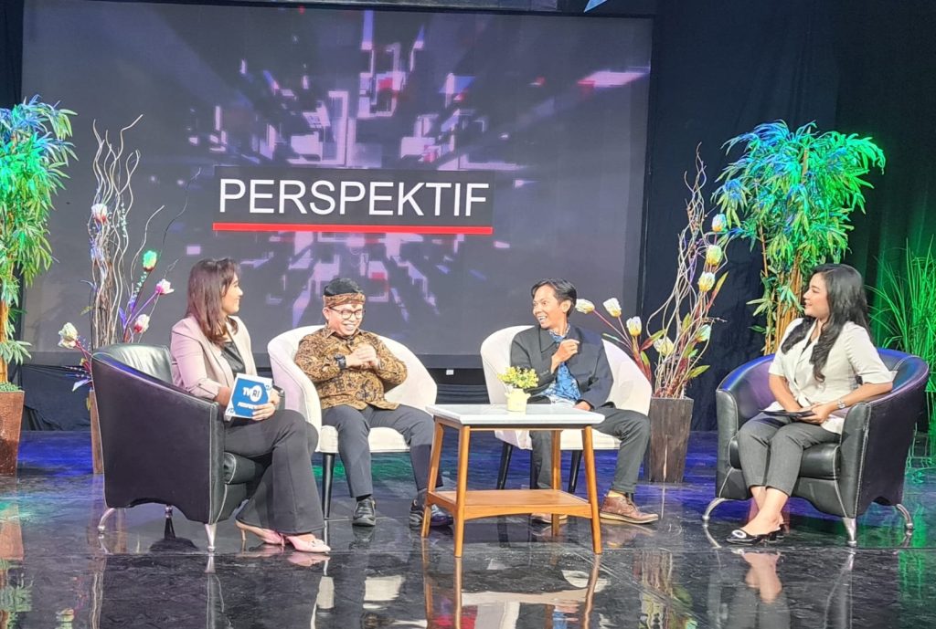 Doktor Ganjar Harimansyah (Sekretaris Badan Pengembangan dan Pembinaan Bahasa/Badan Bahasa) berdialog dengan Mirza Gulam Ahmad (Dosen Unindra) dalam acara Wiwaksa Bastra di program Perspektif TVRI Jakarta